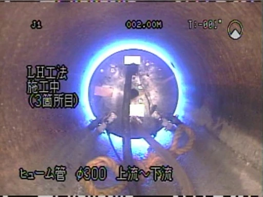 道路を掘り返すことなく、管路の内面から専用の補修器具を用いて薬液を注入し、漏水や土砂流出を防止します。またガラスクロス製繊維材(L・H工法)を不良箇所に貼り付け、管路の耐久性を高めることも可能です。早期対応により大規模工事を未然に防ぎ、コスト削減に貢献します。