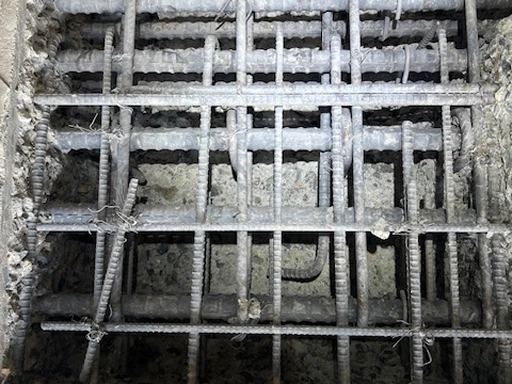 経年劣化した橋梁や橋脚などのコンクリート構造物の補修・補強において、超高圧水発生装置を使用した斫り作業を行います。電動ピック等と違い、健全箇所を傷めず鉄筋裏側までしっかり斫ることができる利点があります。構造物の健全性維持と長寿命化に貢献する高度な技術です。